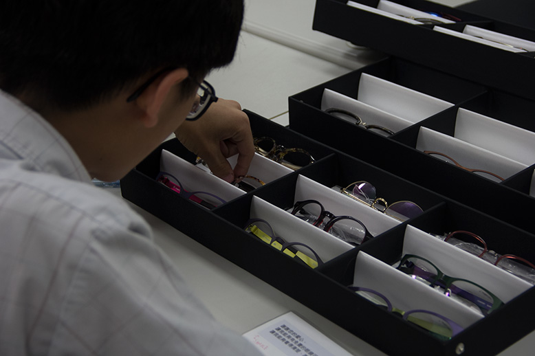 整新後的鏡框重新編號後,集合起來提供給受贈者挑選,再為他們製作鏡片。這些不再使用的眼鏡在配上新鏡片後即將重生。